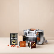 At the heart of the hamper is a bold, striped cooler bag with leatherette trim. Designed to impress, this insulated essential is ideal for beach days, outdoor picnics, or keeping drinks cool during travel or on-site visits. It's a client gift that lives on well after the treats are enjoyed.
