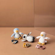 Knitted Penguin crinkle & rattle toy - choose from grey, blue or pink