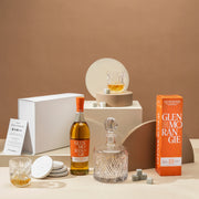 At the heart of the hamper is a ten-year-old Glenmorangie Single Malt Scotch Whisky – a rich and smooth dram known for its elegance and balance. This whisky pairs beautifully with the included etched glass decanter and matching tumblers, creating a statement set that will be proudly displayed for years to come.